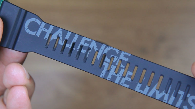 Tali jam bermotif pesan inspirasional yang cocok bagi pemain yang selalu mencoba mendorong batasan, dan para penggemar.