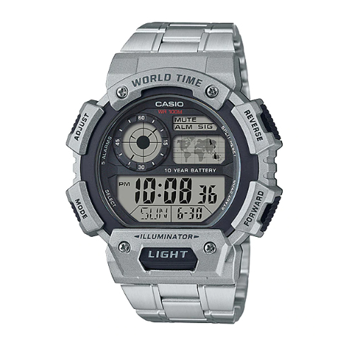 31 time zones (48 cities + coordinated universal time), daylight saving on/off, Home city/World time city swapping - 1/100-second stopwatch