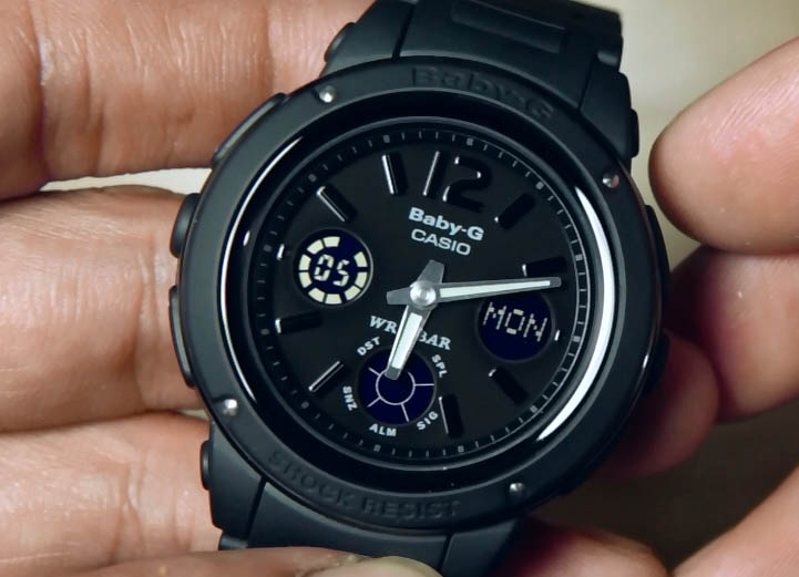 Jika kita lihat di “wajah” jam Casio Baby-G BGA-151 ini terlihat jelas betapa dominannya warna hitam yang menghiasi hampir keseluruhan jam ini. Hanya di beberapa bagian kecil kita akan menemukan warna lain seperti warna putih pada jarum jam dan beberapa tulisan di dalam jam ini yang juga di berikan warna putih. Tidak salah jika jam ini memang diperuntukkan bagi Anda yang sangat menyukai warna hitam