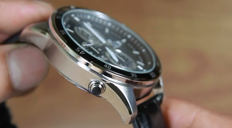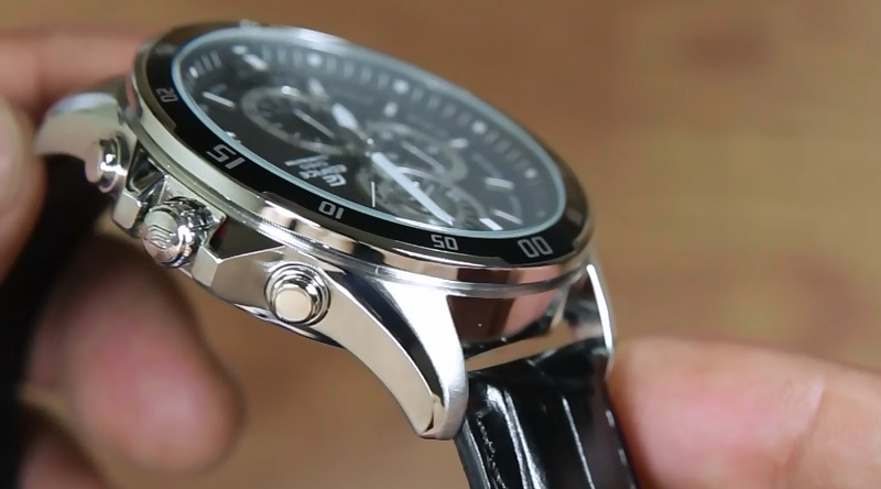 Uniknya tombol lampu pada jam Casio Edifice EFR-547L-1AV ini berada pada sisi kiri bawah, dimana pada sisi ini tombol lampu tersebut menjadi satu-satunya tombol yang tersedia.