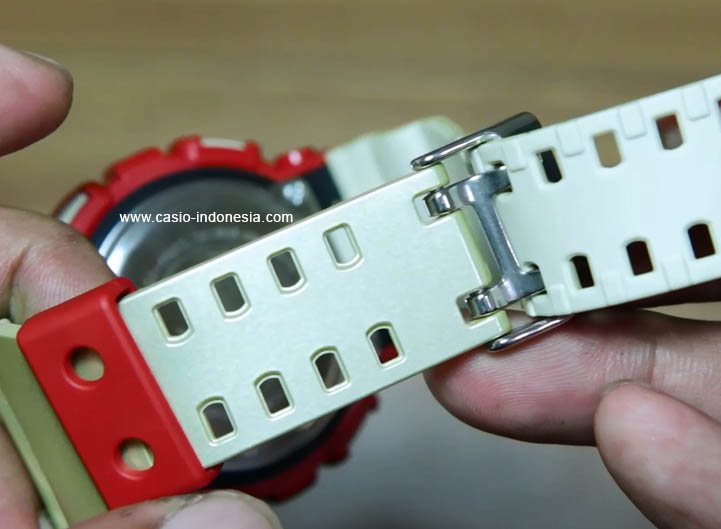 Kombinasi merah dan emas kembali kita temukan pada bagian resin band jam Casio G-shock GA-110CS-4 ini. Dilengkapi dengan buckle stainless steel seakan menyempurnakan desain pada jam ini.