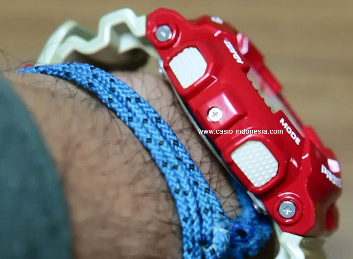 Hal yang cukup unik akan kita temukan pada kedua sisi dari jam Casio G-shock GA-110CS-4 ini. Kedua tombol yang sangat menyerupai mata robot seolah-olah ingin menyakinkan kita kembali akan koneksinya dengan super heroes iron man. Tapi sekali lagi penilaian akhir ada ditangan anda, it’s all about your perception.