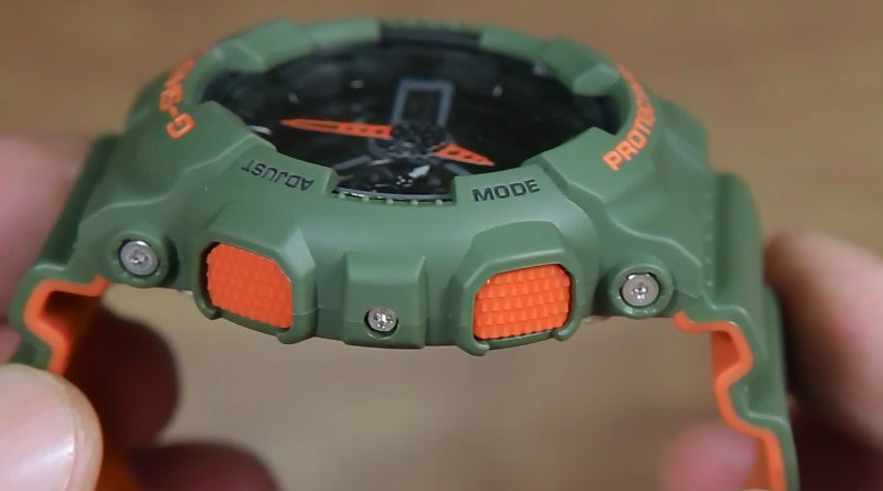 Desain tombol yang digunakan pada jam Casio G-shock GA-110LN-3A ini sedikit masuk dari bezel jam, dengan pertimbangan agar lebih aman saat terbentur atau terjatuh. Bagi Anda yang memiliki jari tangan yang sedikit besar harus sedikit membiasakan diri pada saat menekan tombol-tombol tersebut. Apalagi saat Anda harus menekan tombol tersebut untuk waktu 3-5 detik. Namun kami temukan seiring waktu, jari Anda akan terbiasa.