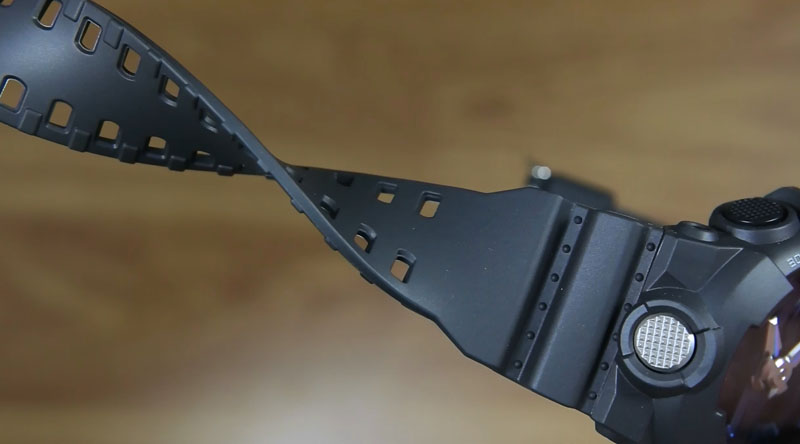Untuk resin band pada jam Casio G-shock GA-710-1A2 ini sendiri tetap menggunakan warna hitam doff yang senada dengan bagian bezel, dan salah satu perbedaan seri GA-710 dan GA-700 adalah penggunaan buckle stainless pada seri GA-710 ini, dimana pada seri GA-700 masih menggunakan buckle berbahan resin. Dengan sistem pengait 2 lubang diharapkan dapat memberikan cengkraman yang lebih erat dipergelangan tangan Anda.