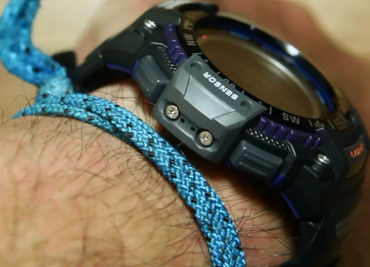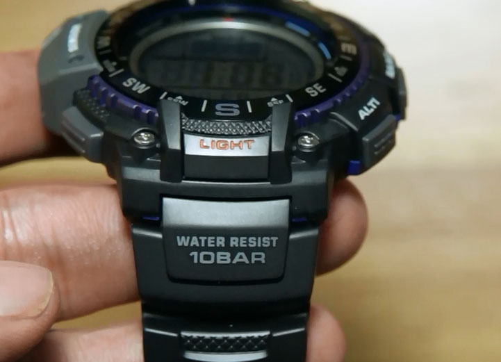 Desain dari tombol sensor pada jam Casio OutGear SGW-1000 ini sendiri menurut kami masih kalah dibandingkan dengan “kakaknya” di lini seri protrek. Meskipun tombolnya lumayan besar namun material yang digunakan pada tombol ini sendiri sedikit kurang berkwalitas sertia hilangnya pattern anti slip bergerigi yang biasa digunakan di tombol triple sensor jam protrek. Sebagai gantinya casio memberikan 6 garis strip kecil pada masing-masing tombol untuk menghindari terjadinya slip.