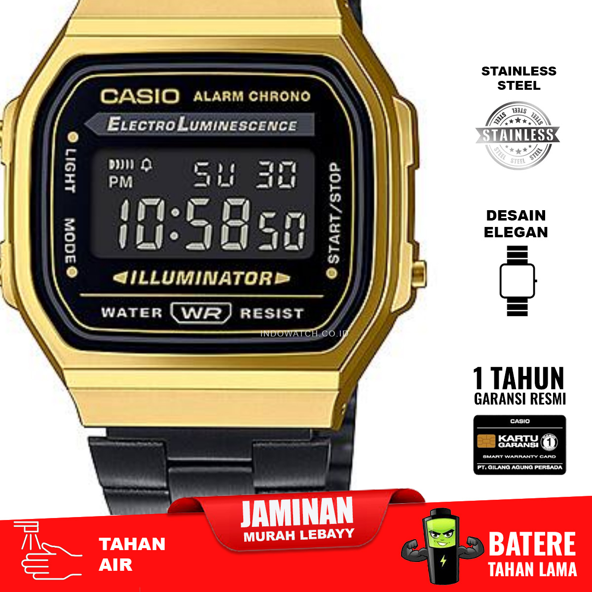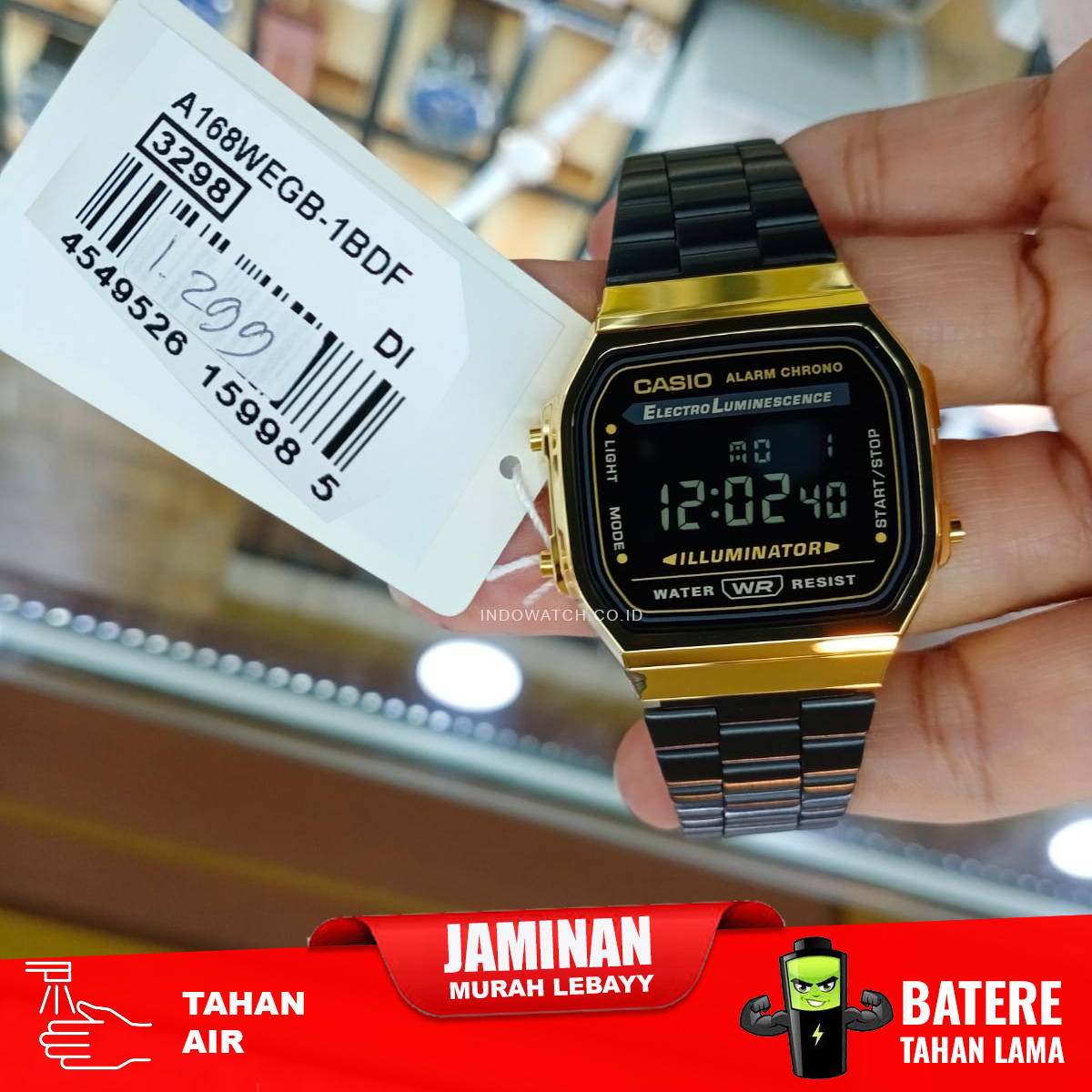 Jam tangan digital yang sangat modis dengan casing metalik dan tali transparan ini dapat menjadi aksesori andalan yang trendi dan membawa Anda kembali ke tahun 80-an. Sejak diluncurkan pada akhir tahun 1980-an, desain A168 tidak pernah berubah dan berhasil menyabet penghargaan Good Design Long Life Design Award pada tahun 2011. Jam tangan dengan muka persegi yang telah lama populer karena tampilannya yang sederhana kini tersedia dalam model berwarna emas dengan A168XESG. Jam tangan ini tidak hanya menonjolkan desain yang bagus, tetapi juga semua fungsi jam tangan digital. Terdapat berbagai macam fungsi yang berguna untuk kehidupan sehari-hari, seperti cahaya latar EL, stopwatch dan alarm, serta daya tahan baterai sekitar tujuh tahun.