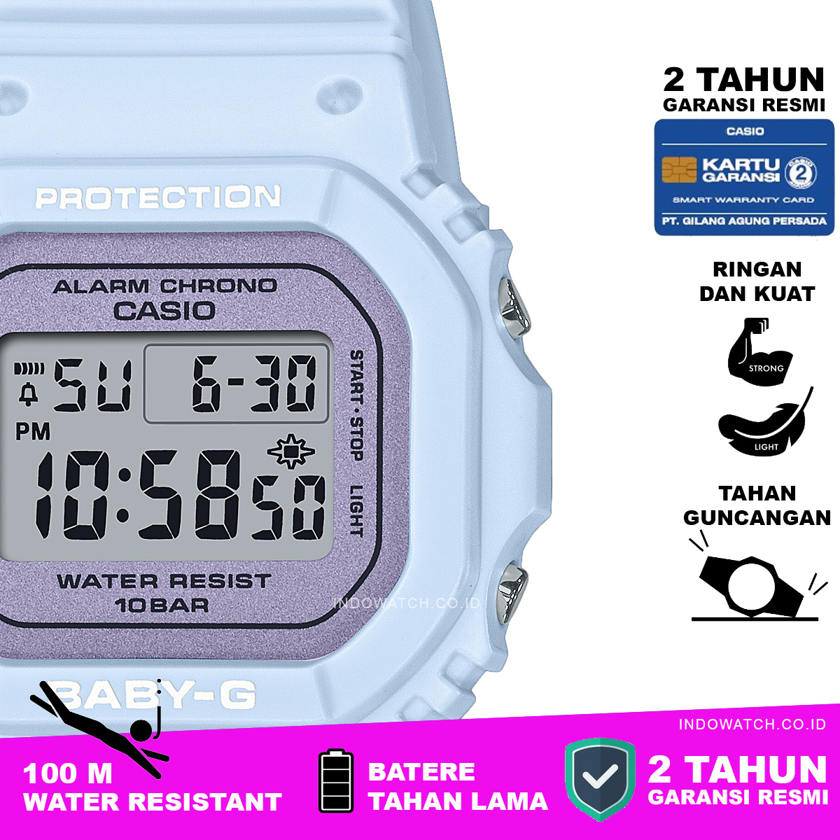 Anda seorang wanita yang ingin menampilkan ekpresi diri Anda melalui jam tangan ? atau Anda seorang pria yang ingin menyenangkan pasangan wanita Anda ? Casio Baby-G bisa menjadi pilihan utama Anda, dengan desain dan warna yang sangat bervariasi memberikan banyak sekali pilihan bagi Anda sesuai personaliti masing-masing.