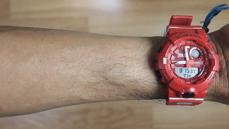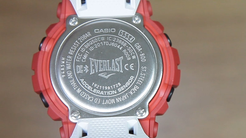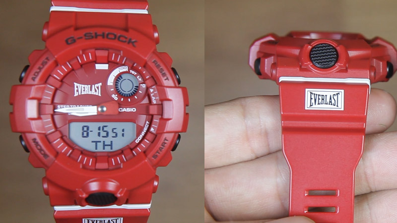 Model jam tangan dasar G-SQUAD GBA-800 menghadirkan kemampuan komunikasi Bluetooth® yang semakin mendekatkan Anda dengan aktivitas olahraga, menjadikannya semakin bermakna dan menyenangkan. Model ini memiliki warna merah matte, yang cocok dengan tampilan jubah tinju, dan menciptakan kesan yang keren. Bagian muka, sabuk, dan penutup belakang dilengkapi dengan logo EVERLAST, dan menyalakan cahaya latar EL akan memunculkan teks “Choice Of Champions,” yang merupakan filosofi EVERLAST, di layar.