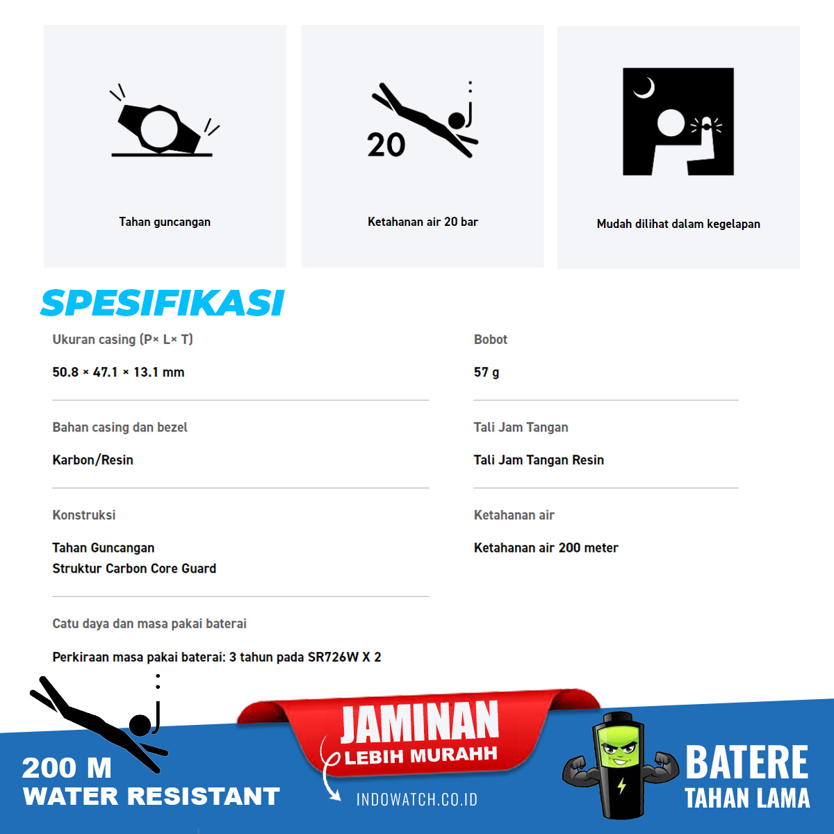 - Ketahanan air 200 meter