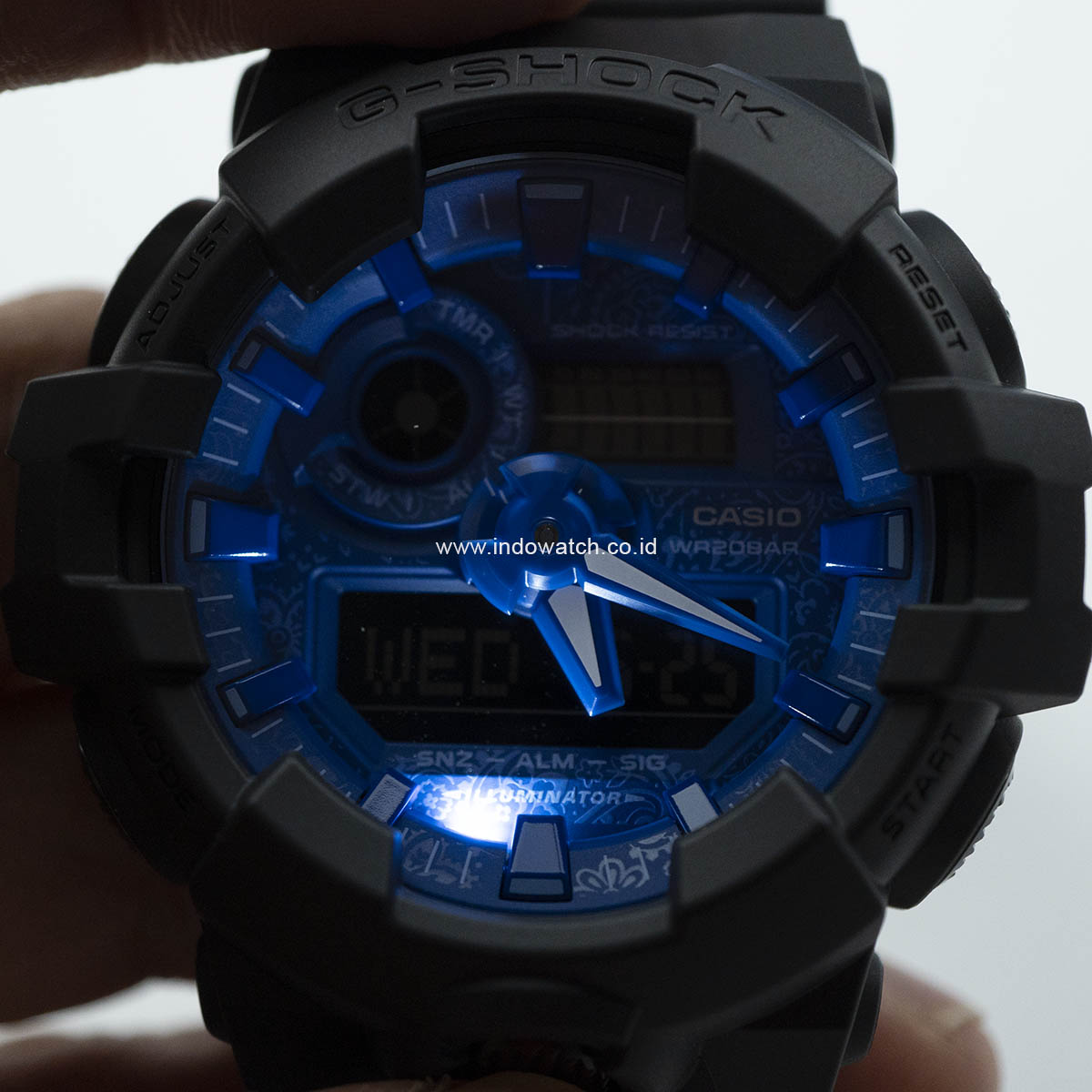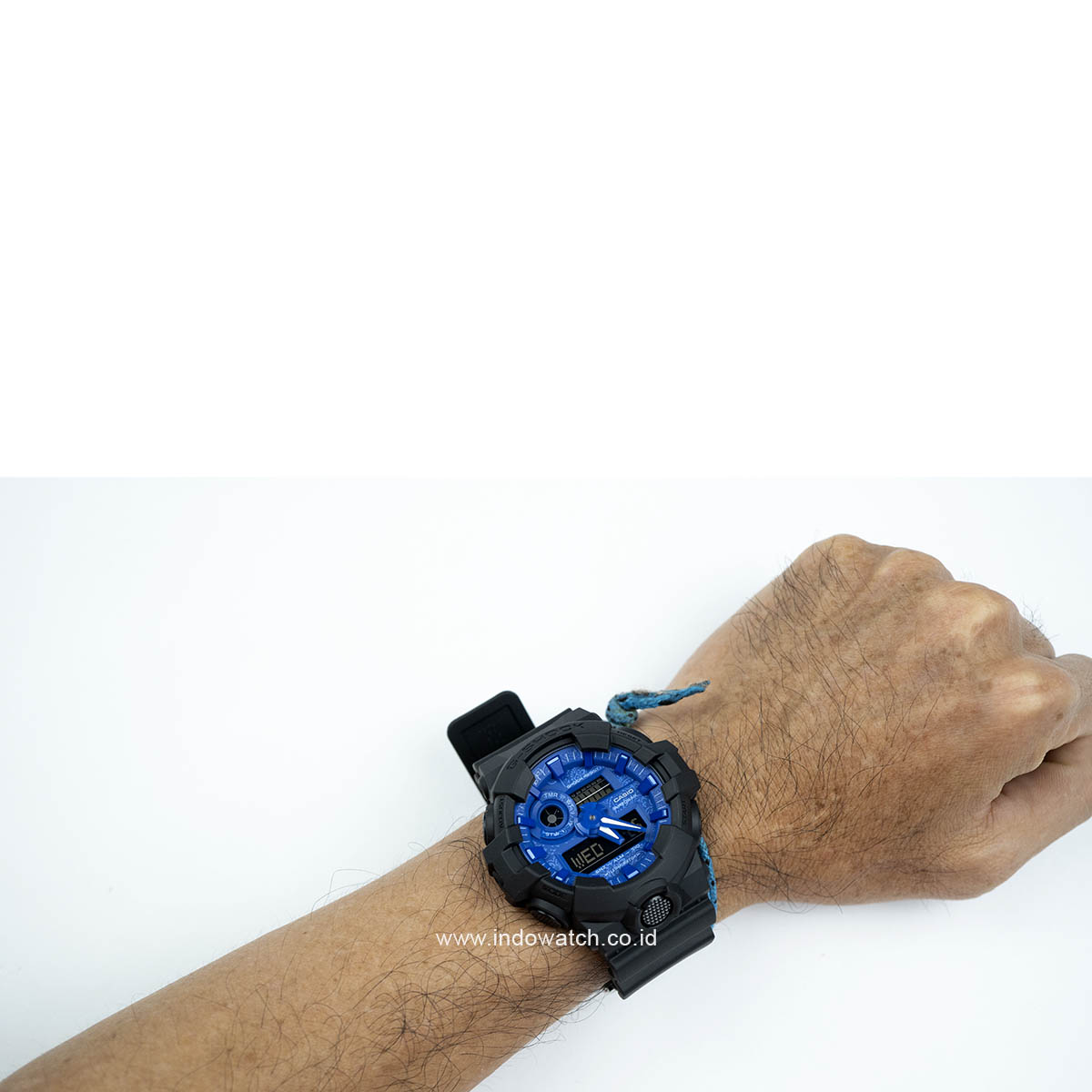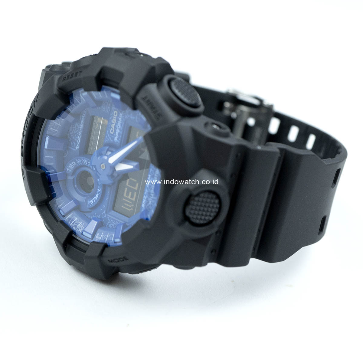 Model dasarnya adalah GA-700 yang tangguh dan tegas. Hitam jet dasar dikombinasikan dengan warna seperti lampu neon untuk menciptakan desain G-SHOCK yang bergaya dan tangguh.