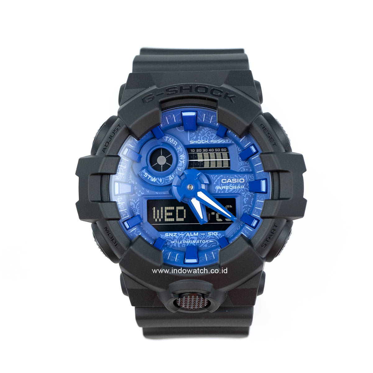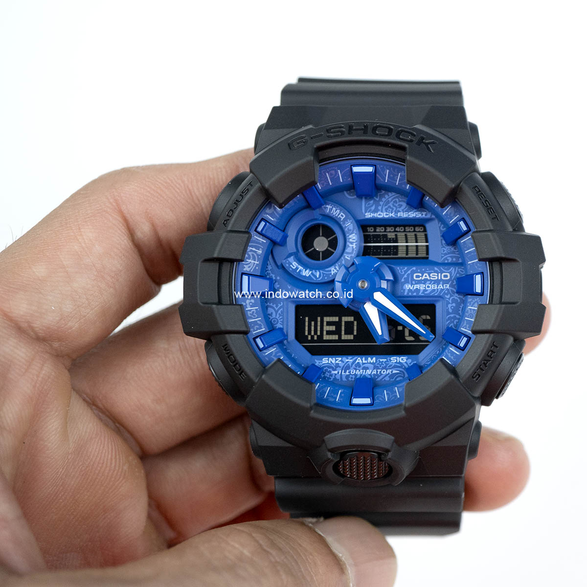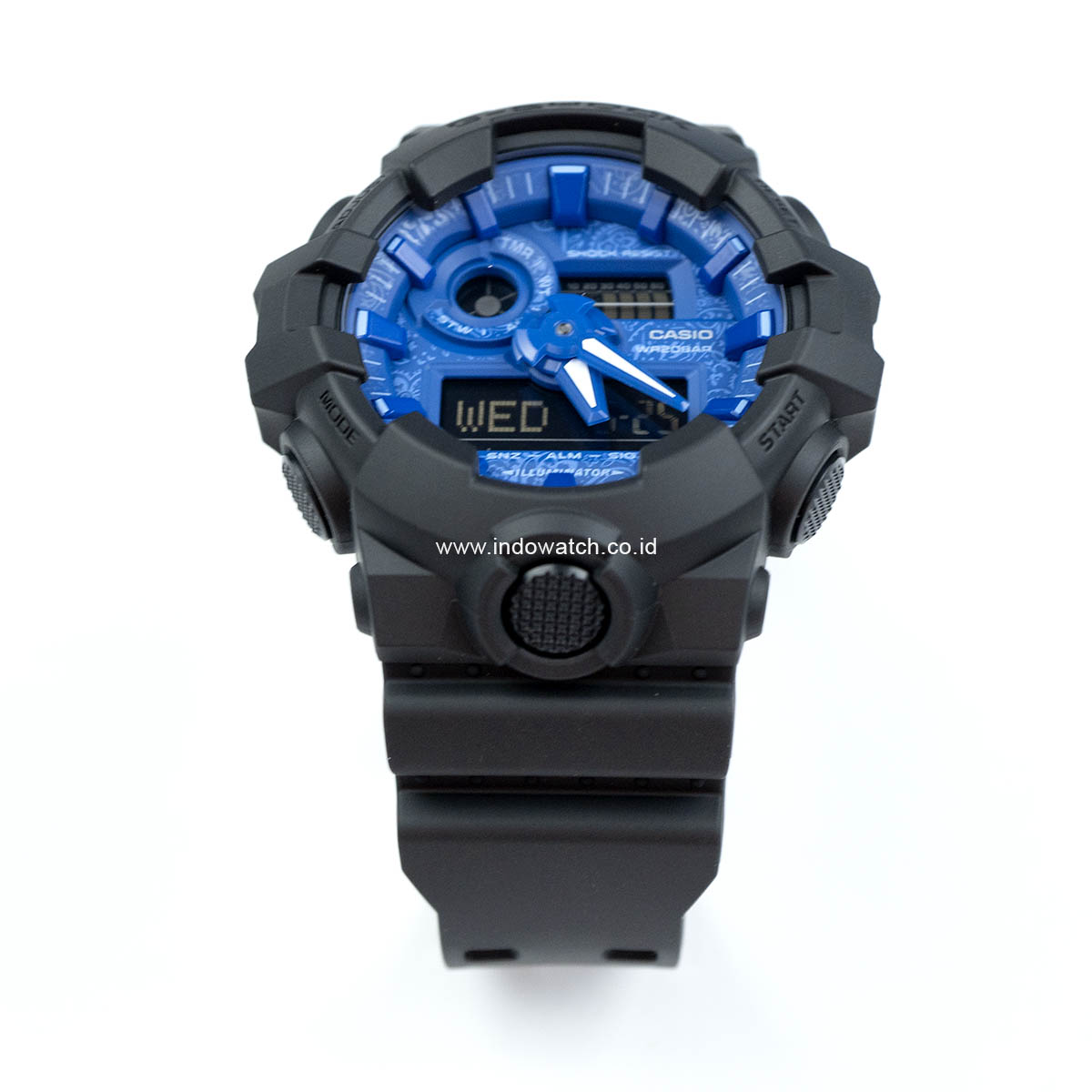 Model dasarnya adalah GA-700 yang tangguh dan tegas. Hitam jet dasar dikombinasikan dengan warna seperti lampu neon untuk menciptakan desain G-SHOCK yang bergaya dan tangguh.