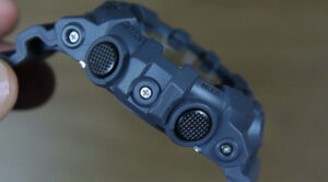 Bagian tombol pada Casio G-shock GA-700UC menjadi salah satu kunci dari desain yang kokoh dan tangguh. Terdapat 5 tombol bulat besar secara keseluruhan pada jam anti getar ini, semua berwarna hitam dengan permukaan anti slip yang bergerigi. Termasuk posisi tombol LIGHT yang berada pada bagian tengah bawah dari jam ini terlihat sangat menantang dan gagah.