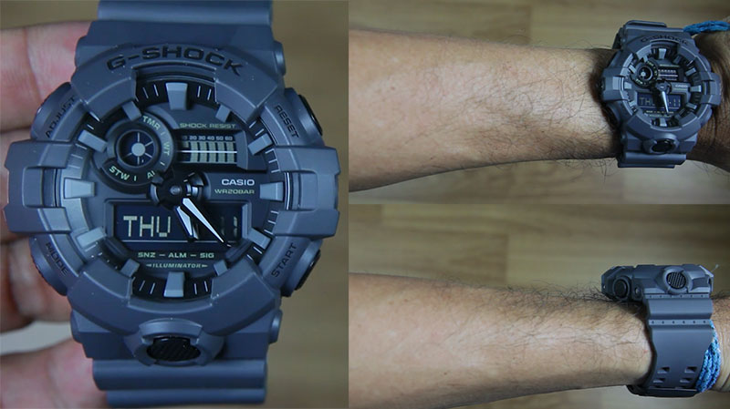 Casio G-shock GA-700UC-8A ini hadir dengan warna abu-abu doff yang terlihat sangat gagah dan elegan yang membungkus bagian bezel dan resin band, yang kemudian dikombinasikan dengan sedikit warna hitam pada bagian dial dan juga LCD pada jam tersebut. Dibagian LCD inilah berbagai data dan fitur jam ini akan ditampilkan seperti waktu dunia, alarm, timer, stopwatch serta penanggalan maupun waktu digital. Dan sebagai penunjuk waktu utama, jarum jam dan menit analog yang menjadi pemeran utama pada jam ini.
