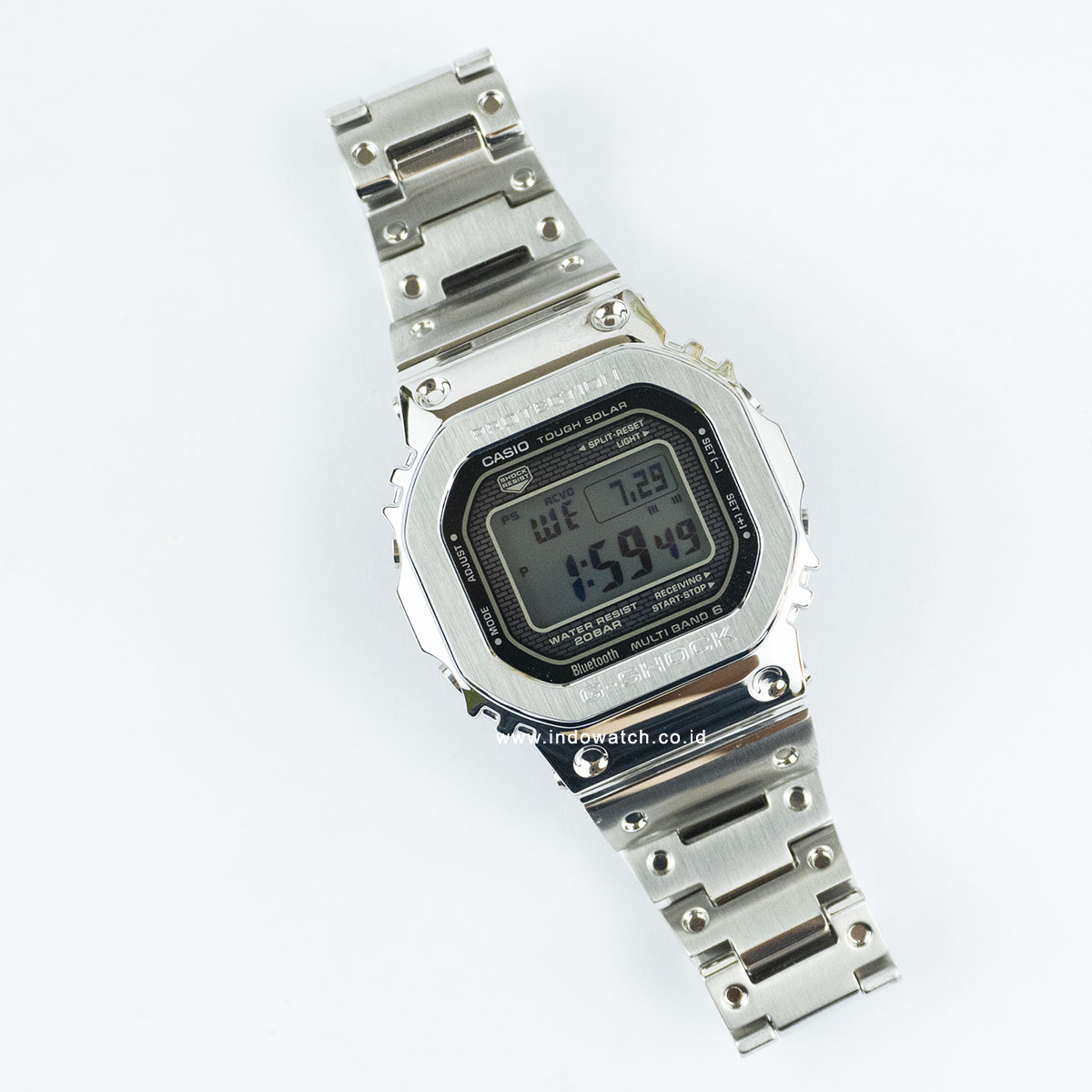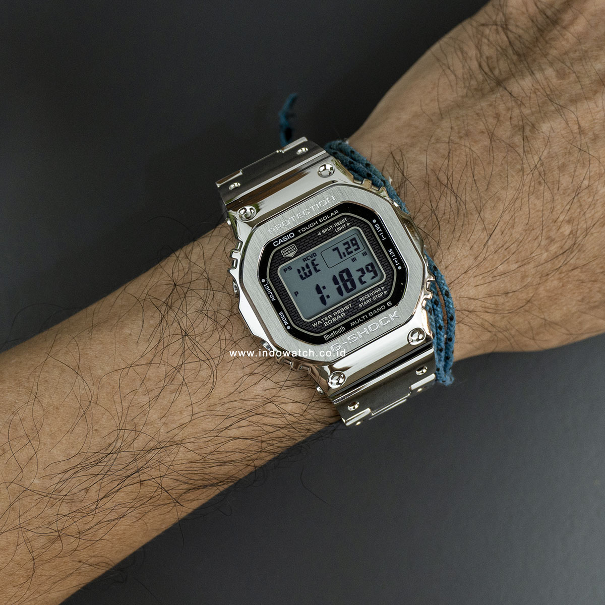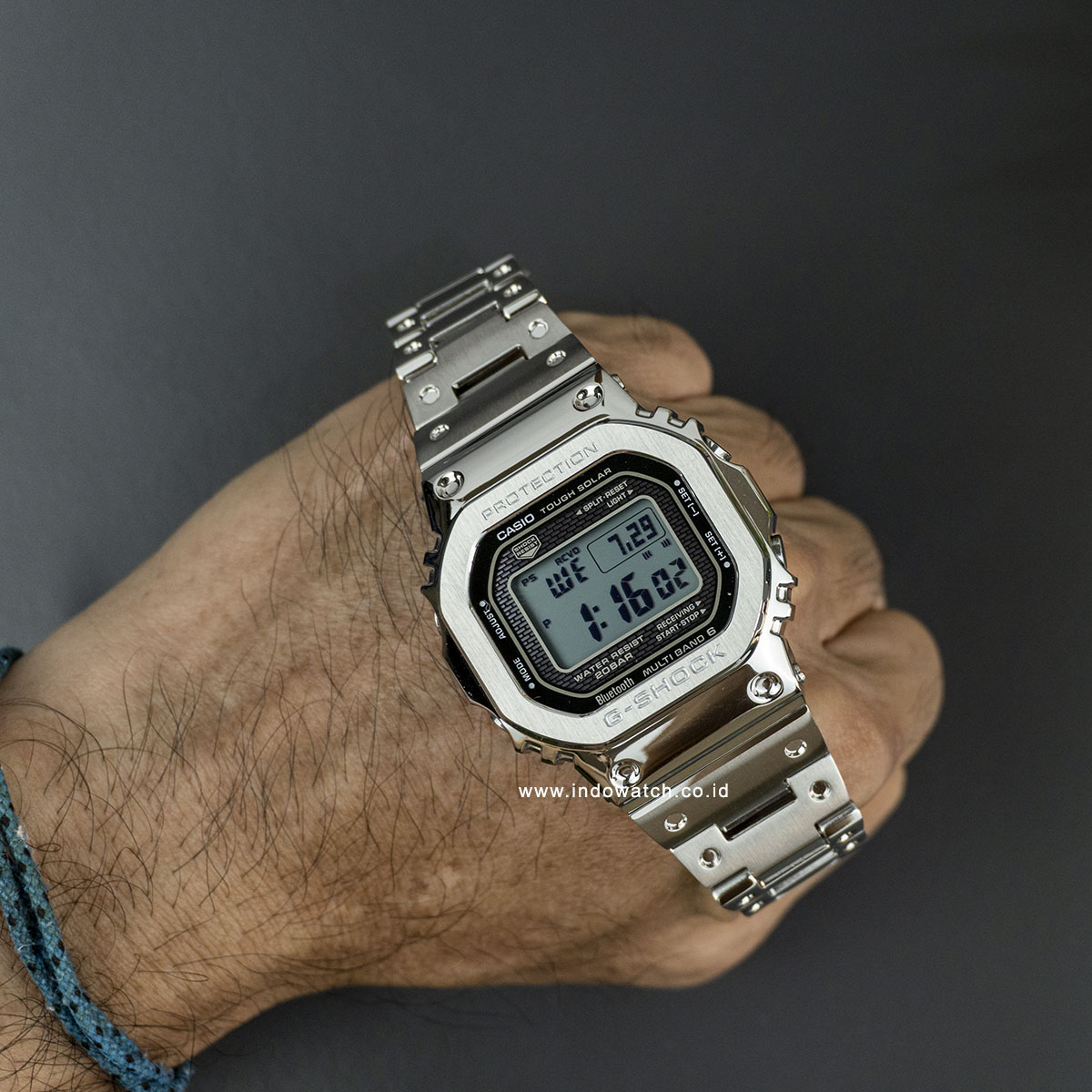 DW-5000C adalah model G-Shock asli yang dirilis pada tahun 1983. Seri GMW-B5000 mengadopsi desain khas perseginya yang dipadukan lapisan full logam. Fitur-fiturnya pun ditambah, termasuk smartphone link. Jam ini mengusung casing full logam dengan bahan bantalan resin murni yang tahan guncangan. Bantalan ini disisipkan di antara casing dan bezel logam baja antikarat yang kokoh. Berkat teknik pemasangan komponen dengan sangat rapat, ukuran jam tangan ini tetap ramping. Bagian belakang jam mengusung Screw Lock Back yang kuat dan finising DLC agar tahan lama. Dengan mengadopsi cekungan Tali Jam Resin versi orisinalnya, GMW-B5000D-1 memiliki desain rantai logam seperti pada model pertamanya. Visibilitasnya juga disempurnakan berkat penggunaan sel surya tipis dan STN-LCD (kristal cair). Dari aspek fungsionalitas, model ini dilengkapi dengan konektivitas Bluetooth® sehingga bisa dihubungkan dengan aplikasi khusus demi memperoleh info waktu yang akurat. Jam ini juga mengusung berbagai fitur praktis, termasuk sistem koreksi waktu yang menggunakan sinyal frekuensi dan waktu standar (Multi-Band 6), sumber daya yang andal dengan teknologi Tough Solar, lampu latar LED Otomatis yang sangat cerah, Waktu Dunia dan tampilan hari dalam enam bahasa. Ini adalah model G-Shock yang mengadopsi desain model pendahulunya, tetapi disempurnakan dengan desain full logam.
