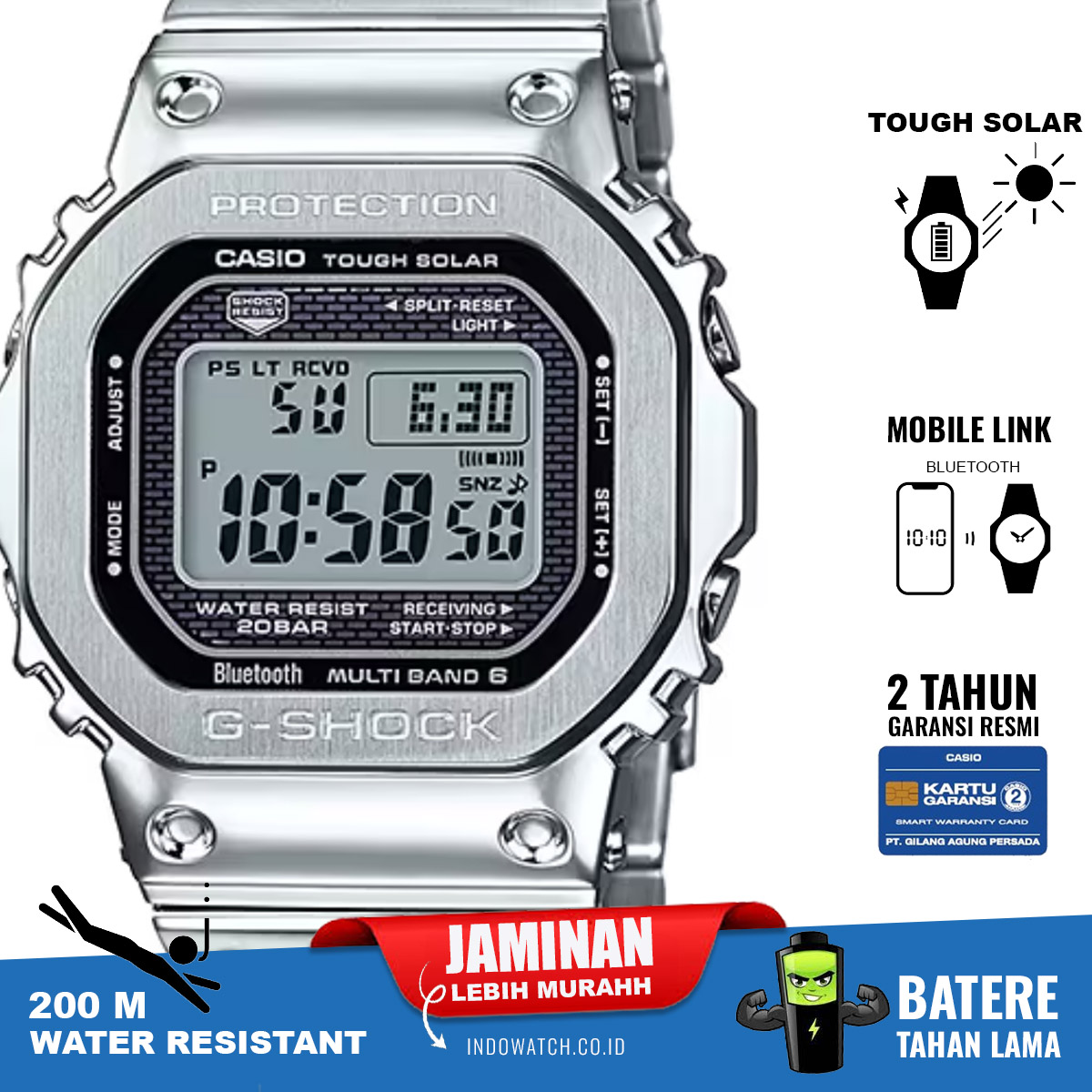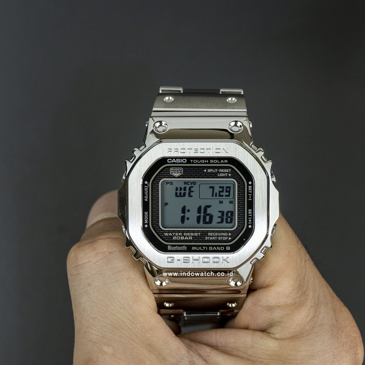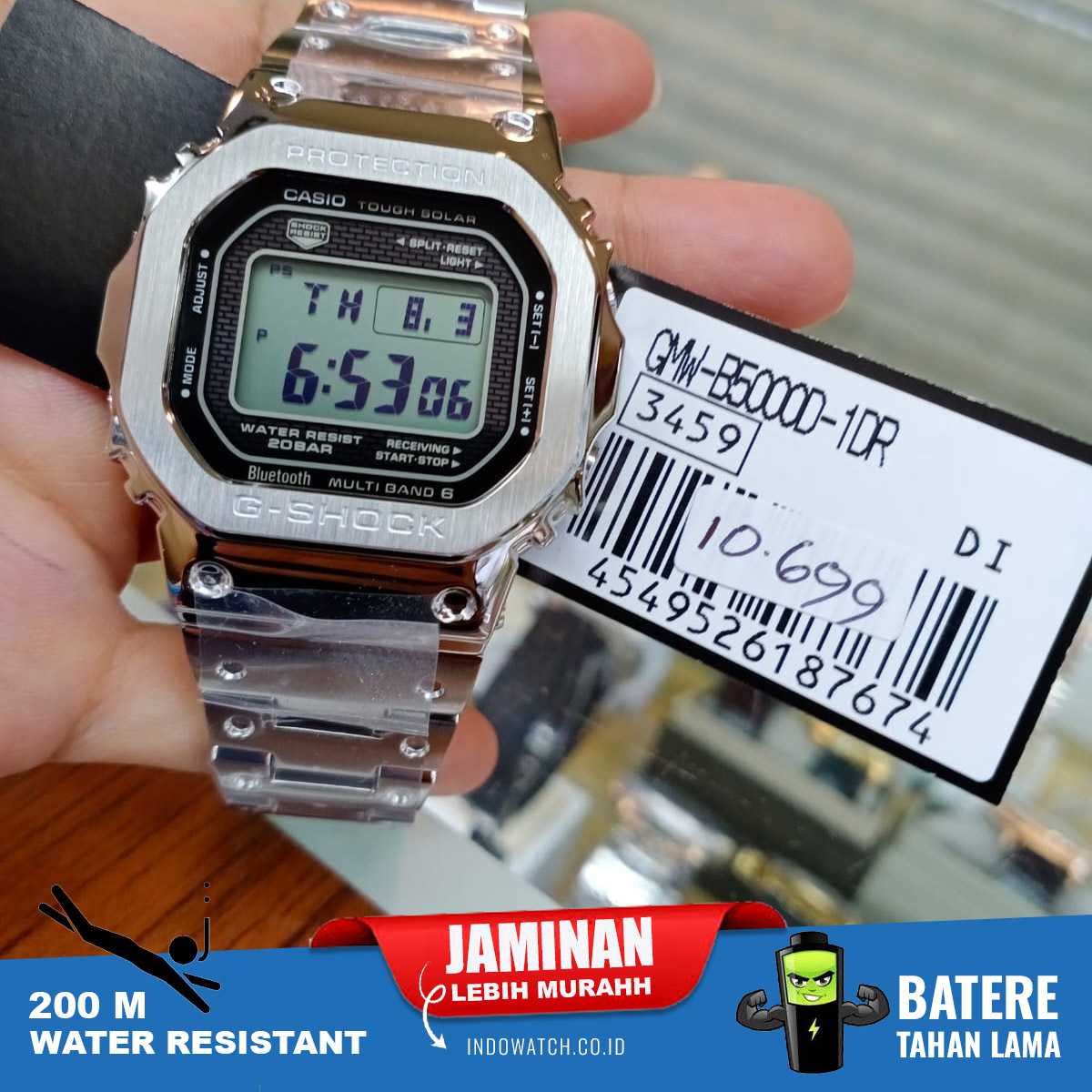 DW-5000C adalah model G-Shock asli yang dirilis pada tahun 1983. Seri GMW-B5000 mengadopsi desain khas perseginya yang dipadukan lapisan full logam. Fitur-fiturnya pun ditambah, termasuk smartphone link. Jam ini mengusung casing full logam dengan bahan bantalan resin murni yang tahan guncangan. Bantalan ini disisipkan di antara casing dan bezel logam baja antikarat yang kokoh. Berkat teknik pemasangan komponen dengan sangat rapat, ukuran jam tangan ini tetap ramping. Bagian belakang jam mengusung Screw Lock Back yang kuat dan finising DLC agar tahan lama. Dengan mengadopsi cekungan Tali Jam Resin versi orisinalnya, GMW-B5000D-1 memiliki desain rantai logam seperti pada model pertamanya. Visibilitasnya juga disempurnakan berkat penggunaan sel surya tipis dan STN-LCD (kristal cair). Dari aspek fungsionalitas, model ini dilengkapi dengan konektivitas Bluetooth® sehingga bisa dihubungkan dengan aplikasi khusus demi memperoleh info waktu yang akurat. Jam ini juga mengusung berbagai fitur praktis, termasuk sistem koreksi waktu yang menggunakan sinyal frekuensi dan waktu standar (Multi-Band 6), sumber daya yang andal dengan teknologi Tough Solar, lampu latar LED Otomatis yang sangat cerah, Waktu Dunia dan tampilan hari dalam enam bahasa. Ini adalah model G-Shock yang mengadopsi desain model pendahulunya, tetapi disempurnakan dengan desain full logam.