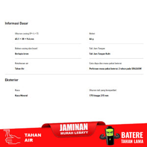 Perkiraan masa pakai baterai: 3 tahun pada SR626SW