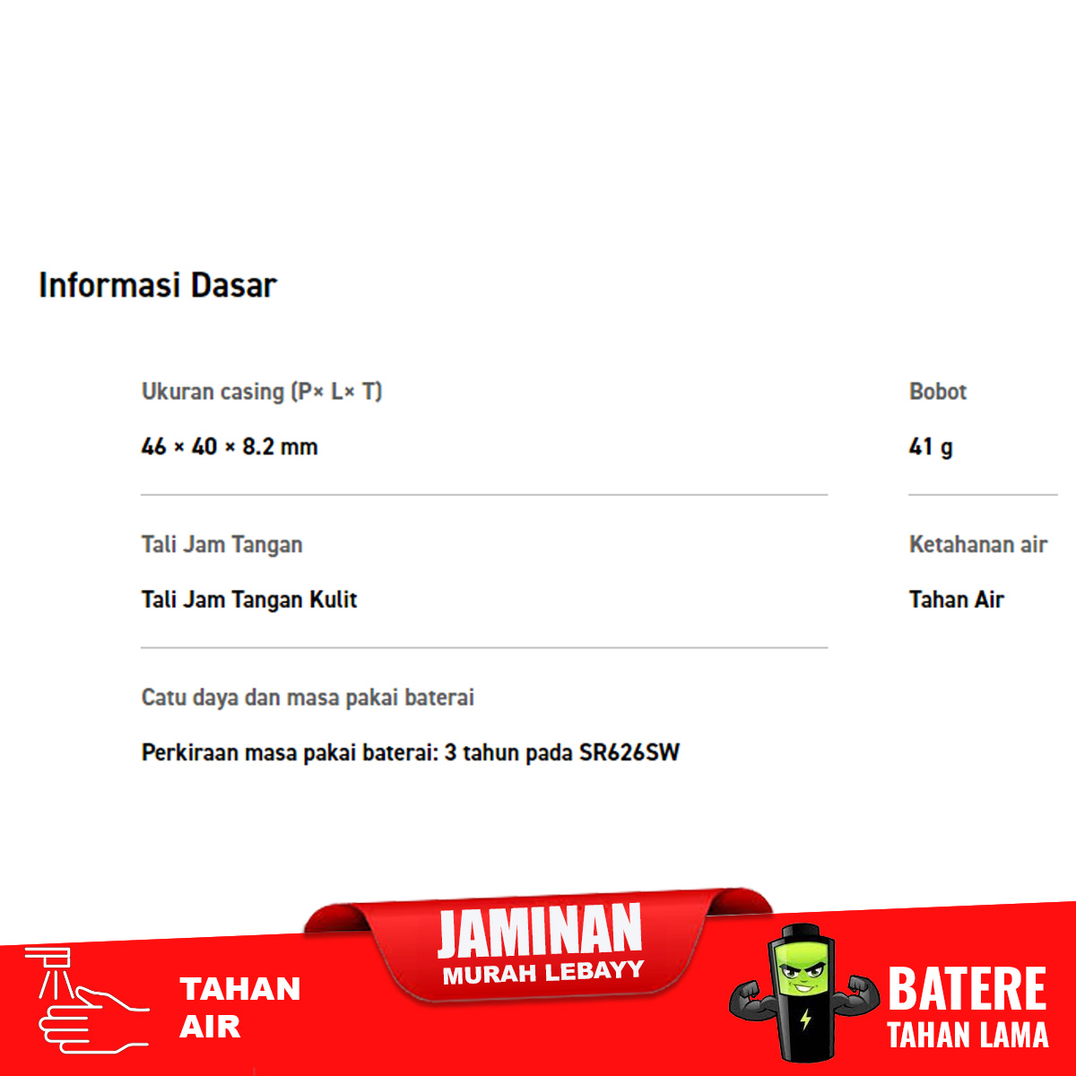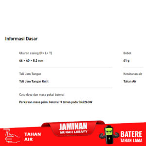 Perkiraan masa pakai baterai: 3 tahun pada SR626SW