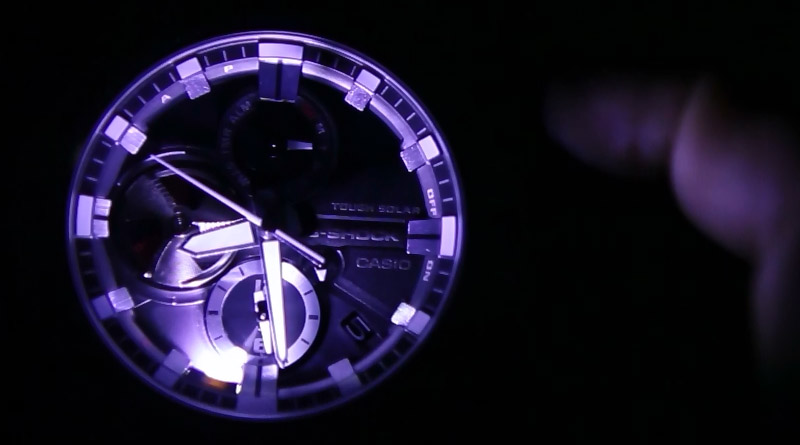 Kemewahan lainnya terlihat pada saat kita menekan tombol lampu pada saat kondisi gelap, terlihat LED putih ini mampu memberikan sorotan yang cukup maksimal berkat penggunaan lampu LED Super Illuminator pada Casio G-Shock G-STEEL GST-B100-1A ini.