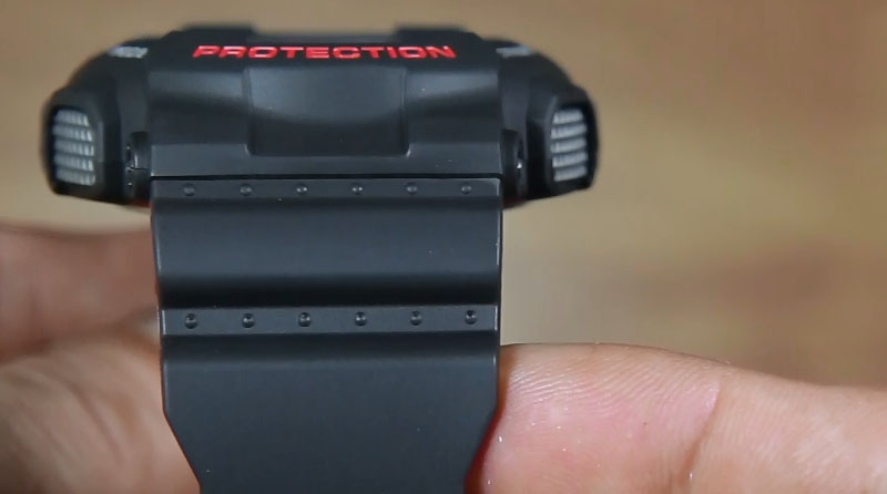 Desain tombol yang digunakan pada jam Casio G-shock GA-110HR-1A ini sedikit masuk dari bezel jam, dengan pertimbangan agar lebih aman saat terbentur atau terjatuh. Bagi Anda yang memiliki jari tangan yang sedikit besar harus sedikit membiasakan diri pada saat menekan tombol-tombol tersebut. Apalagi saat Anda harus menekan tombol tersebut untuk waktu 3-5 detik. Namun kami temukan seiring waktu, jari Anda akan terbiasa.