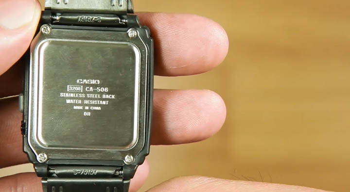 Jam Casio Standard CA-506B-1A ini sendiri hanya dilabeli dengan “water resistant” yang mungkin hanya mampu bertahan dari air hujan, cipratan air saat mandi dan tentunya karena banyaknya tombol yang ada pada jam ini sebaiknya Anda tidak terlalu sering “memandikan” jam kalkulator ini.