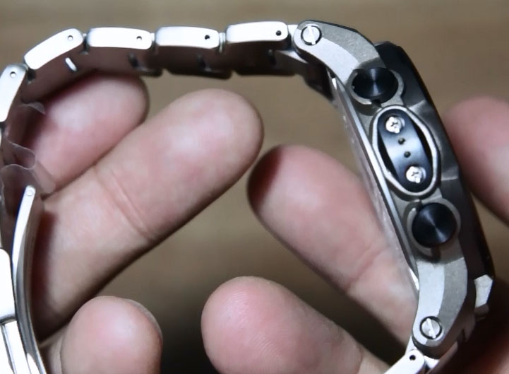 Dari tampak depan jam ini sekilas mirip dengan casio protrek PRW-3000-1, hanya yang membedakannya jika prw-3000-1 menggunakan resin band berwarna hitam sedangkan jam ini memiliki titanium band yang memiliki warna dan material yang menyatu dengan bezel dari jam casio protrek PRW-3000T ini.